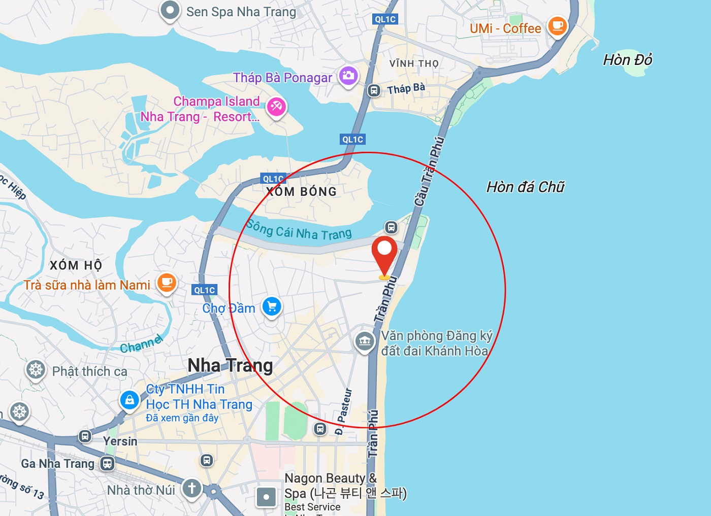 Khu đô thị Cồn Tân Lập nằm ở góc 2 mặt tiền đường Trần Phú và đường Xóm Cồn, TP Nha Trang.