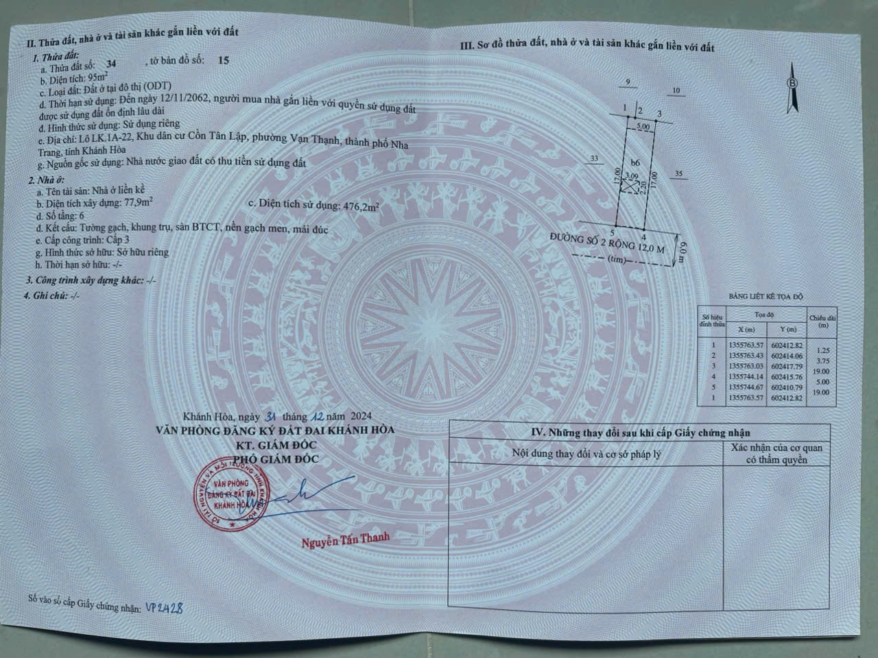 Tin tứcCác Giấy Chứng nhận đã hoàn công tại Dự án Khu dân cư Cồn Tân Lập Nha- Vạn Thạnh – Nha Trang – Khánh Hoà Các Giấy Chứng nhận đã hoàn công tại Dự án Khu dân cư Cồn Tân Lập Nha- Vạn Thạnh – Nha Trang – Khánh Hoà