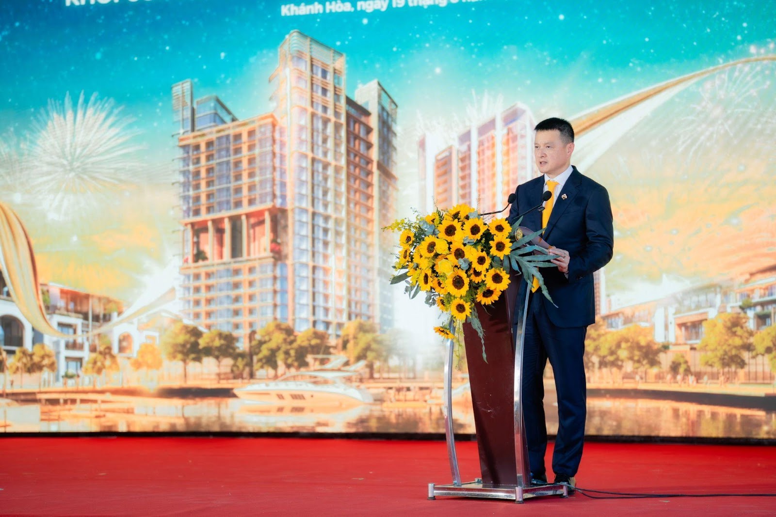 Phát biểu tại buổi lễ, ông Đặng Minh Trường – Chủ tịch HĐQT Tập đoàn Sun Group nhấn mạnh: “Là dấu ấn đầu tiên của Tập đoàn Sun Group tại Khánh Hoà, chúng tôi cam kết sẽ làm đẹp, làm chất lượng, để kiến tạo nên một hệ sinh thái du lịch mới đa trải nghiệm: văn hóa, vui chơi giải trí, lưu trú, thúc đẩy kinh tế đêm. Với chiến lược phát triển dài hạn tại Khánh Hòa, Tập đoàn Sun Group sẽ tiếp tục nghiên cứu, đề xuất và phát triển các dự án trọng điểm khác về hạ tầng giao thông, du lịch nghỉ dưỡng cao cấp và vui chơi giải trí, nhằm phát huy tối đa tiềm năng của tỉnh, đồng thời tạo ra các sản phẩm du lịch mới, độc đáo, góp phần nâng cao năng lực cạnh tranh, đưa Khánh Hòa đến vị thế mới trên bản đồ du lịch quốc tế.”.